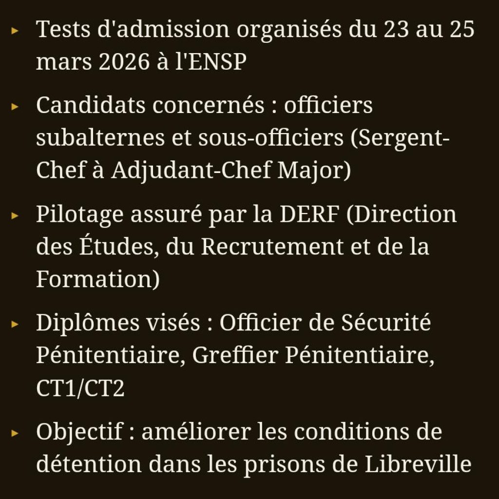 Cette session d’admission s’inscrit dans une dynamique plus large de professionnalisation du corps pénitentiaire gabonais. En dotant ses agents de formations certifiantes et structurées, l’ENSP entend ériger la compétence au rang de pilier fondamental d’un système carcéral en profonde mutation. Les résultats des épreuves seront communiqués dans les prochaines semaines, ouvrant la voie à une nouvelle promotion de professionnels aguerris au service de la justice et de la réinsertion.